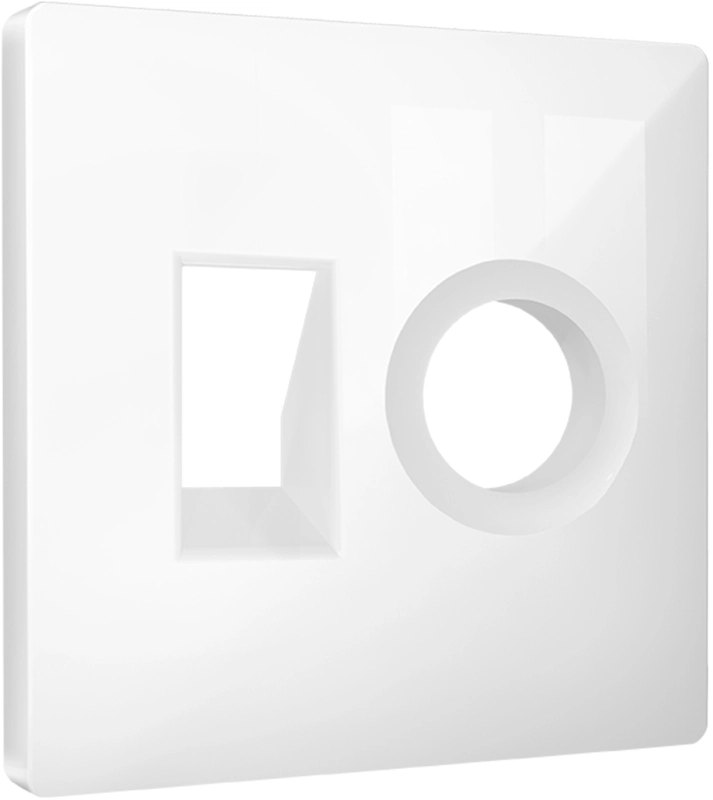 Лицевая панель ALFA (Белый глянец) для компьютерной/телефонной + TV розетки RJ-45/RJ-11 QUANT AP1125
