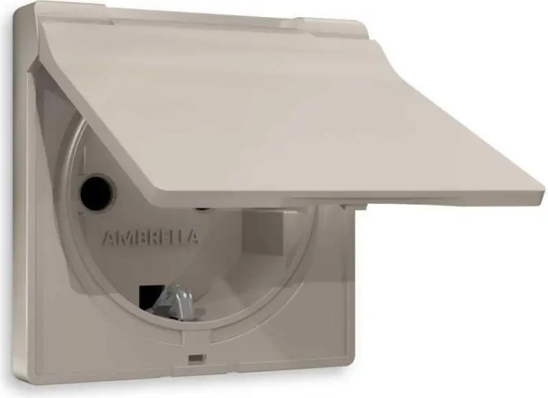 Лицевая панель ALFA (Серо-бежевый матовый) для электрической розетки с заземлением со шторками и защитной крышкой IP44 QUANT AP3680