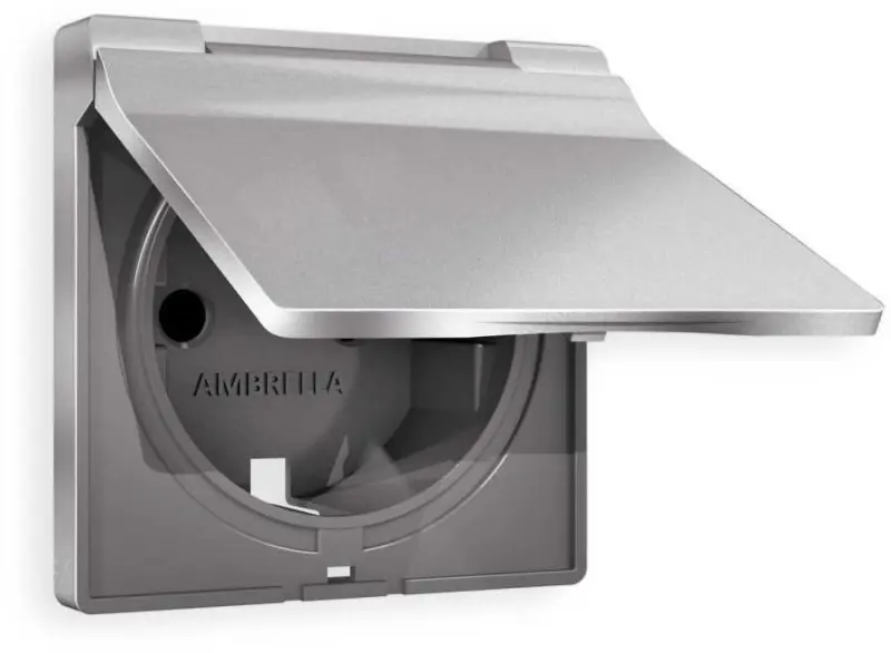 Лицевая панель ALFA (Сталь матовый) для электрической розетки с заземлением со шторками и защитной крышкой IP44 QUANT AP5080