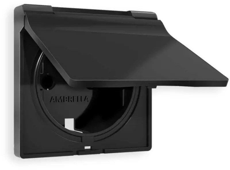 Лицевая панель ALFA (Черный матовый) для электрической розетки с заземлением со шторками и защитной крышкой IP44 QUANT AP8080