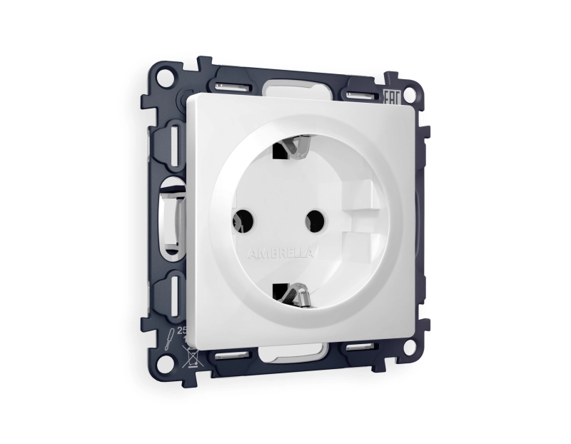 Комплект механизма электрической розетки ALFA MA106010 Белый глянец 16A-250V 50Hz 2P+E с заземлением на винтовых зажимах QUANT (AP1060, VM141)