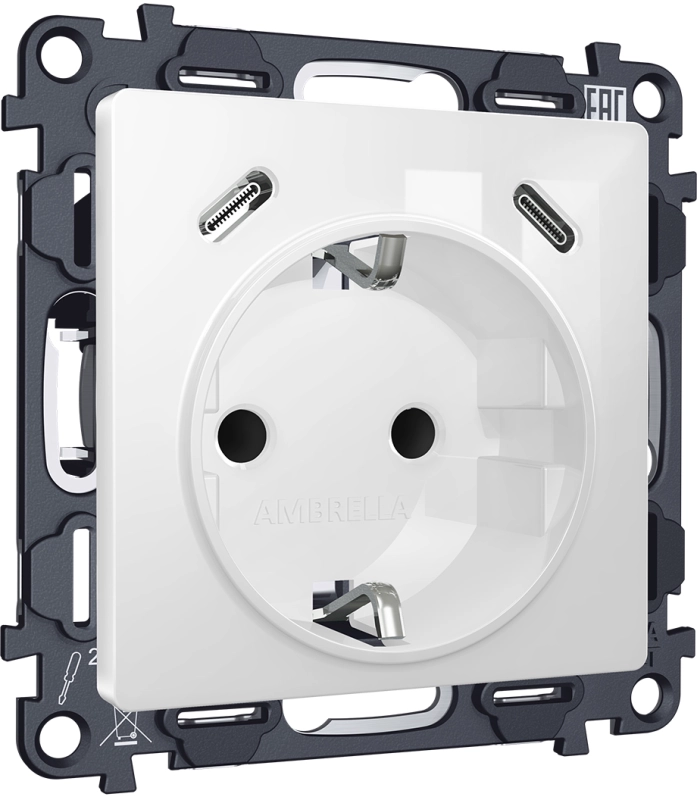 Розетка электрическая Ambrella ALFA БЕЛЫЙ ГЛЯНЕЦ