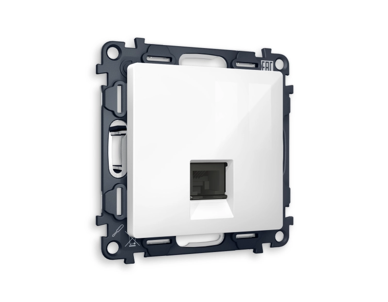 Комплект механизма телефонной розетки ALFA MA112030 Белый глянец RJ-11(4P4C) с автоматической защитной шторкой QUANT (AP1120, VM190)