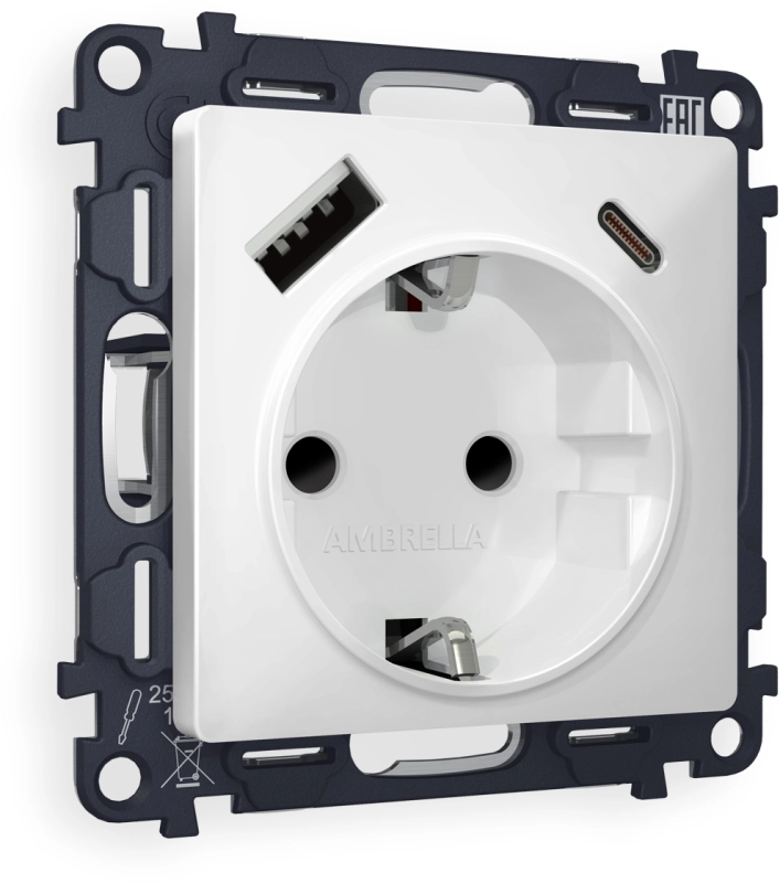 Розетка электрическая Ambrella ALFA БЕЛАЯ МАТОВАЯ