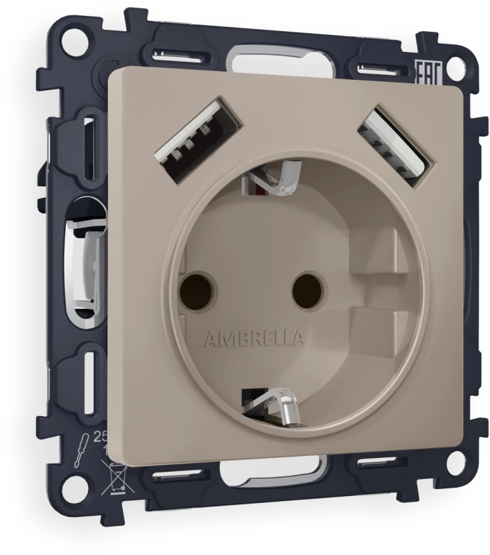 Розетка электрическая Ambrella ALFA СЕРО-БЕЖЕВЫЙ МАТОВЫЙ