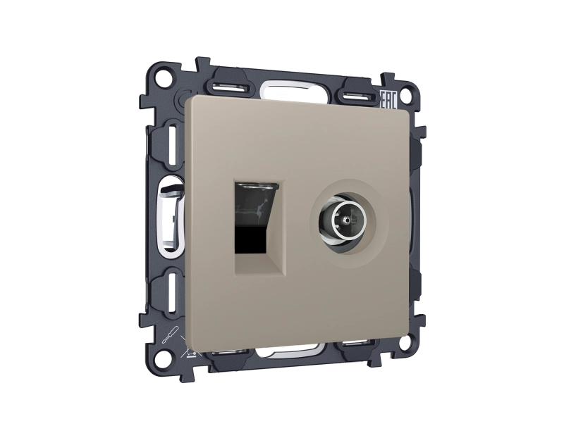 Комплект механизма розетки компьютерной + TV оконечной RJ-45 (8P8C) CAT6/50-870 MHz 1dB с автоматической защитной шторкой ALFA MA372510 Серо-бежевый матовый QUANT (AP3725, VM195)
