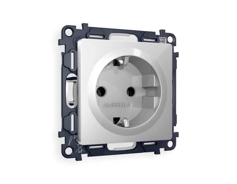 Комплект механизма электрической розетки ALFA MA406010 Серебро глянец 16A-250V 50Hz 2P+E с заземлением на винтовых зажимах QUANT (AP4060, VM141)