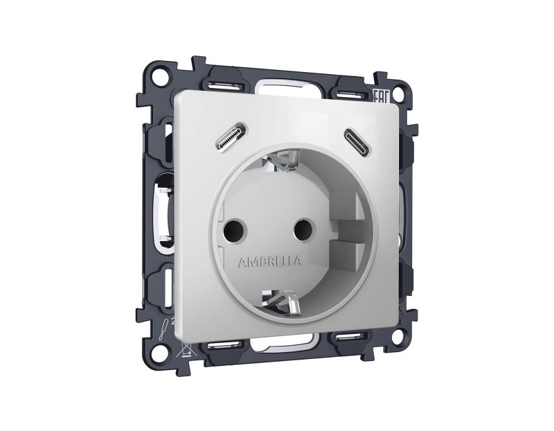 Комплект механизма электрической розетки 2USB С+C 20W (быстрая зарядка) с/з на винтовых зажимах 16A-250V ALFA MA410510 Серебро глянец QUANT (AP4105, VM165)