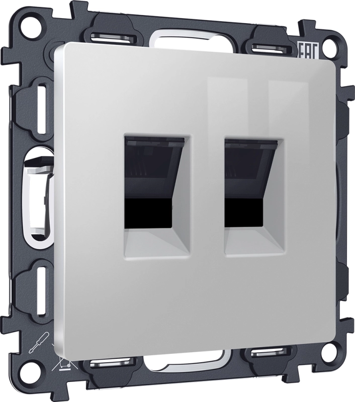 Розетка информационная двойная Ambrella ALFA СЕРЕБРО ГЛЯНЕЦ