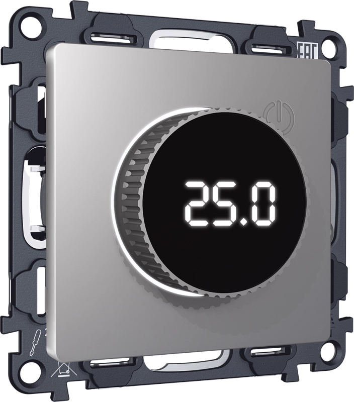 Терморегулятор с цифровым дисплеем с подсветкой и датчиком для теплого пола Ambrella ALFA (Сталь матовый)