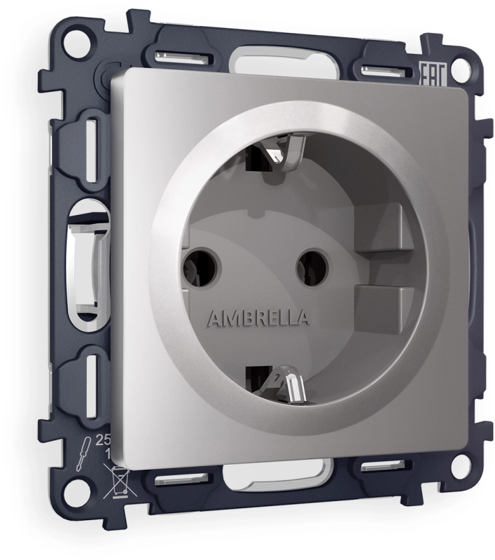 Розетка электрическая Ambrella ALFA СТАЛЬ МАТОВЫЙ