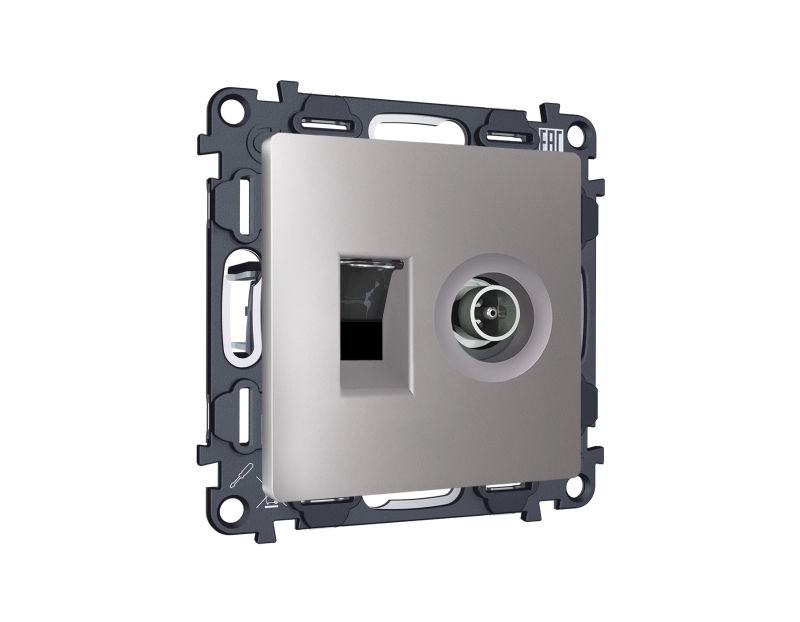 Комплект механизма розетки компьютерной + TV оконечной RJ-45 (8P8C) CAT6/50-870 MHz 1dB с автоматической защитной шторкой ALFA MA512510 Сталь матовый QUANT (AP5125, VM195)