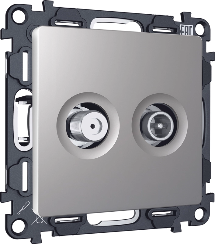 Розетка TV оконечная + SAT Ambrella ALFA (Сталь матовый) 5-862MHz 3.5dB/950-2150MHz 3.5dB