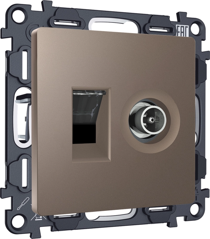 Розетка TV оконечная + компьютерная RJ-45 CAT6 Ambrella ALFA (Тёмная бронза)