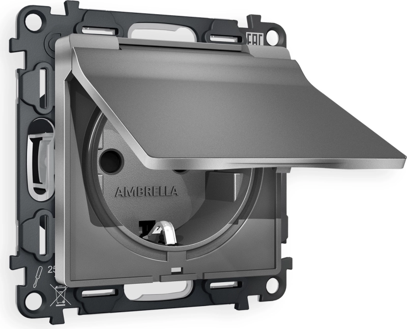 Розетка электрическая Ambrella ALFA АНТРАЦИТ СЕРЫЙ