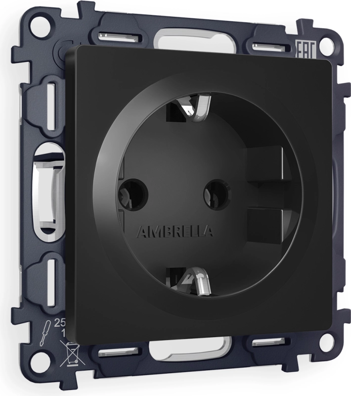 Розетка электрическая Ambrella ALFA ЧЁРНАЯ МАТОВАЯ