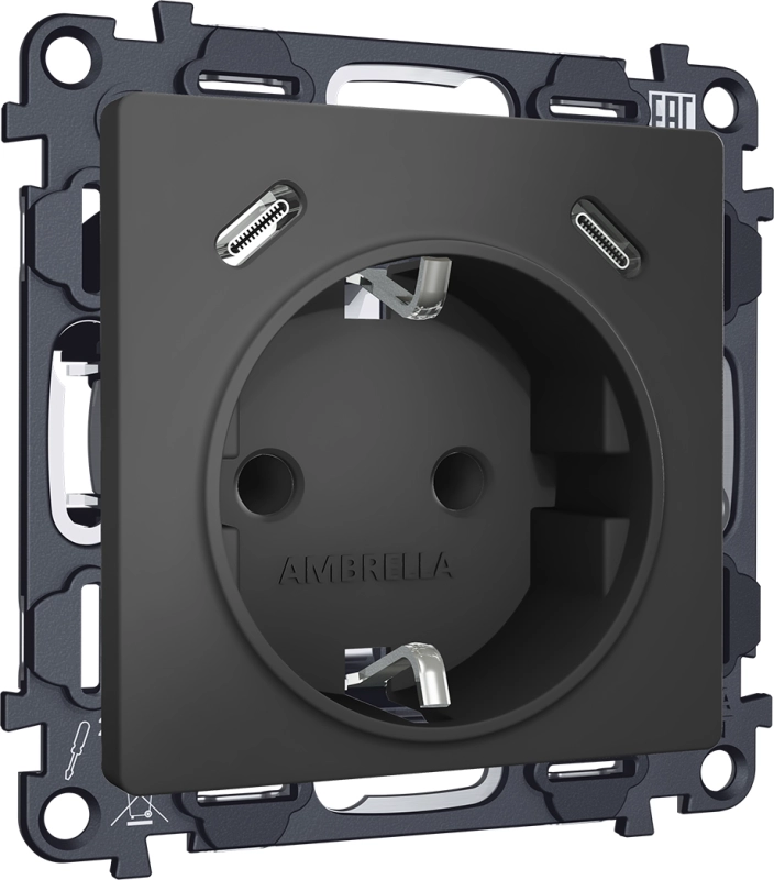 Розетка электрическая Ambrella ALFA ГРАФИТ SOFT TOUCH