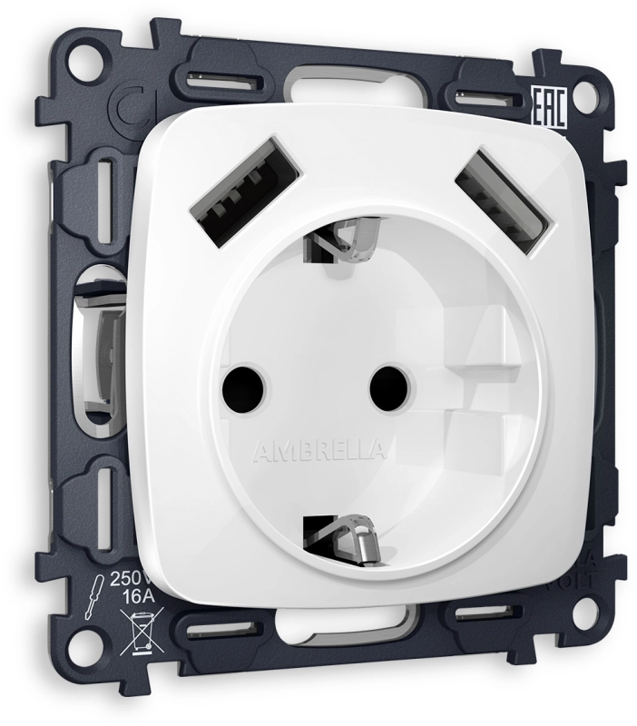 Розетка электрическая Ambrella OMEGA БЕЛЫЙ ГЛЯНЕЦ