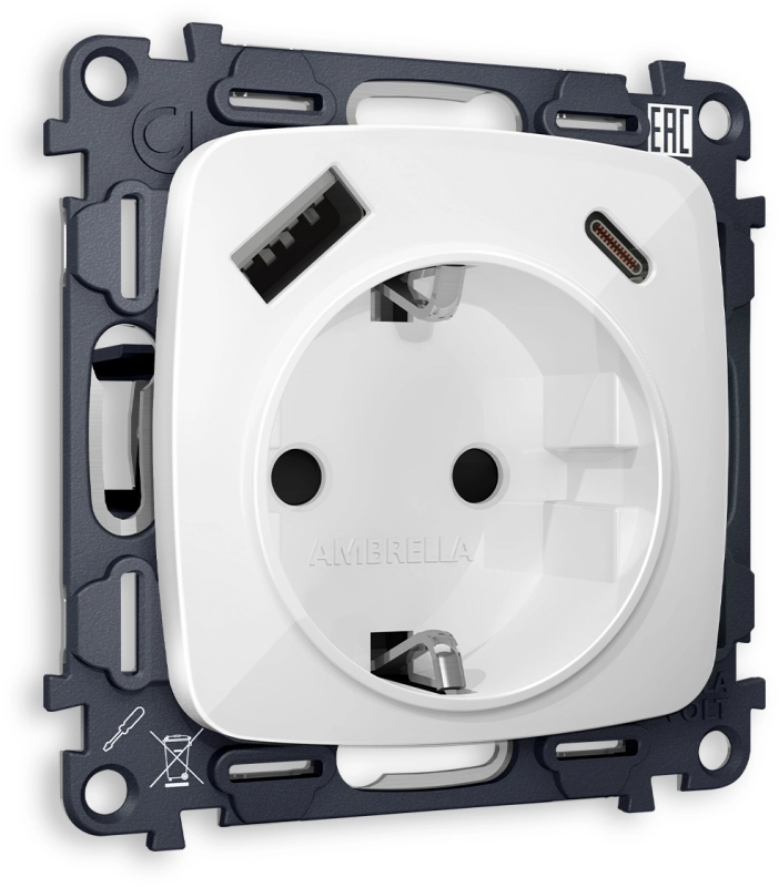 Розетка электрическая Ambrella OMEGA БЕЛЫЙ ГЛЯНЕЦ