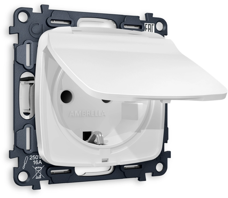 Шторки закрывают контакты розетки и открываются только, когда в розетку вставляется вилка. Это обеспечивает дополнительную защиту детей и препятствует попаданию пыли на контакты.