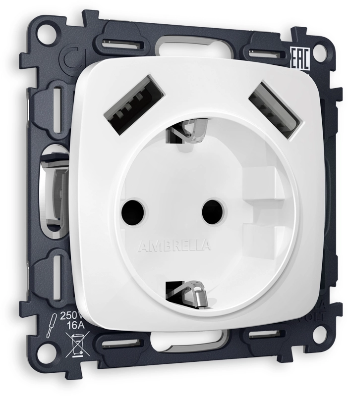 Розетка электрическая Ambrella OMEGA БЕЛАЯ МАТОВАЯ