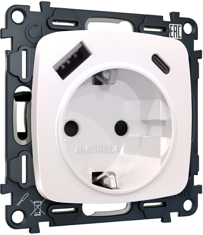 Шторки закрывают контакты розетки и открываются только, когда в розетку вставляется вилка. Это обеспечивает дополнительную защиту детей и препятствует попаданию пыли на контакты.