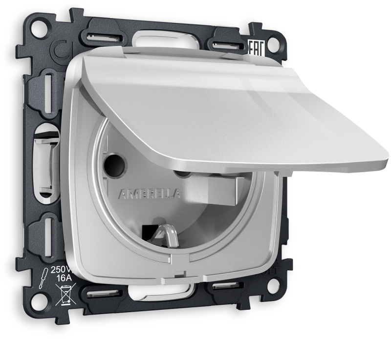 Розетка электрическая Ambrella OMEGA СЕРЕБРО ГЛЯНЕЦ