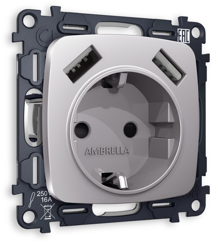 Розетка электрическая Ambrella OMEGA СТАЛЬ МАТОВЫЙ