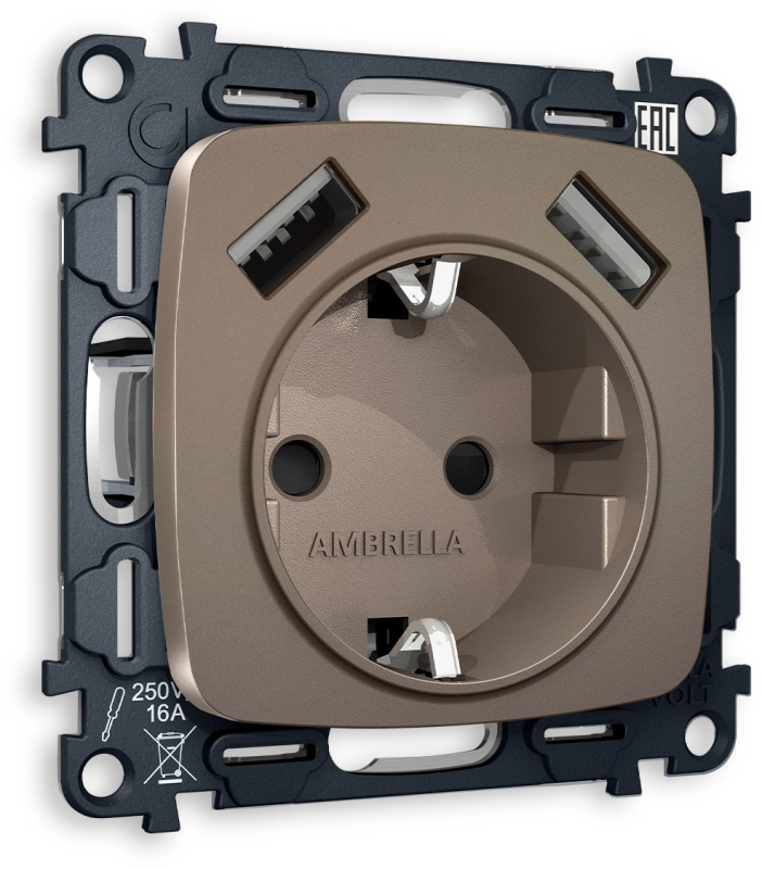 Розетка электрическая Ambrella OMEGA ТЁМНАЯ БРОНЗА