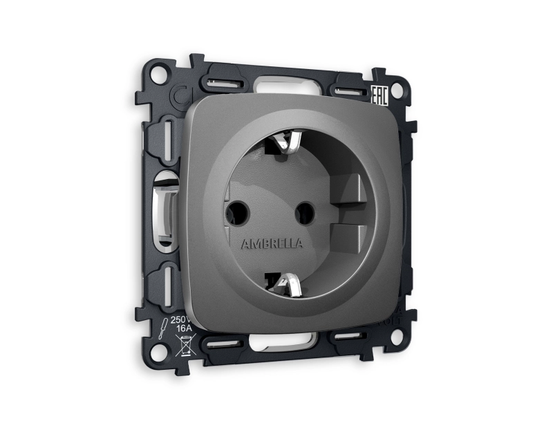 Комплект механизма электрической розетки OMEGA MO656010 Антрацит серый 16A-250V 50Hz 2P+E с заземлением на винтовых зажимах QUANT (OP6560, VM141)