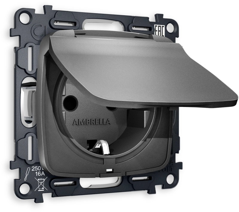 Розетка электрическая Ambrella OMEGA АНТРАЦИТ СЕРЫЙ