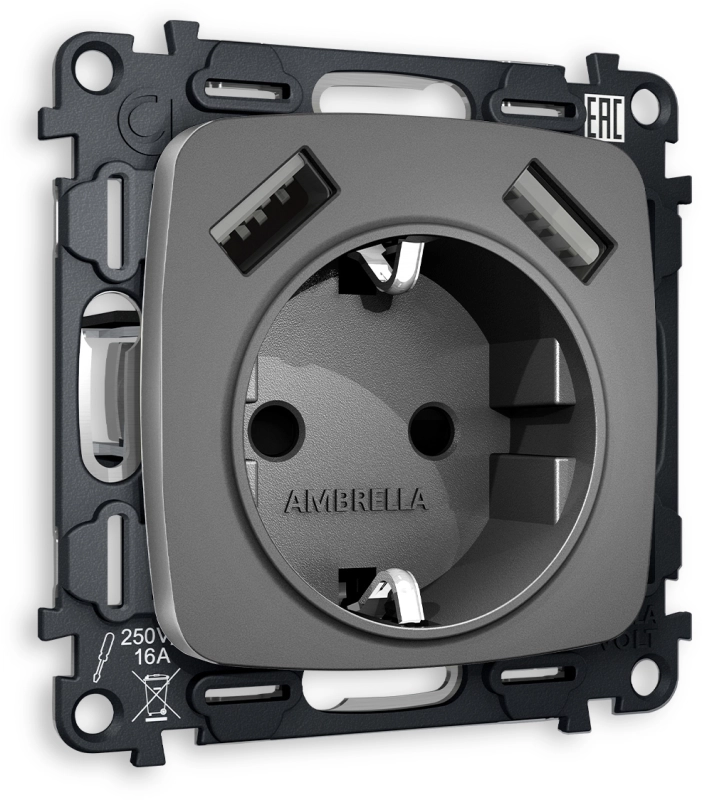 Розетка электрическая Ambrella OMEGA АНТРАЦИТ СЕРЫЙ