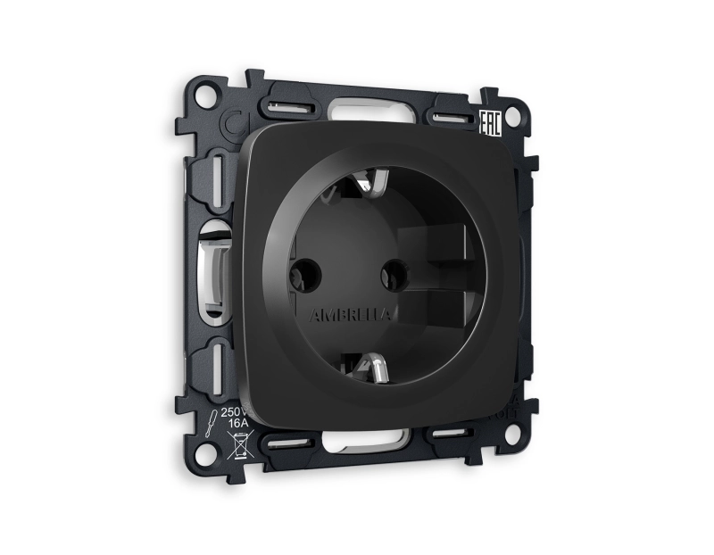 Комплект механизма электрической розетки OMEGA MO806010 Черный матовый 16A-250V 50Hz 2P+E с заземлением на винтовых зажимах QUANT (OP8060, VM141)