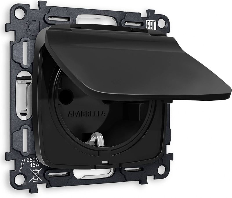 Розетка электрическая Ambrella OMEGA ЧЁРНАЯ МАТОВАЯ