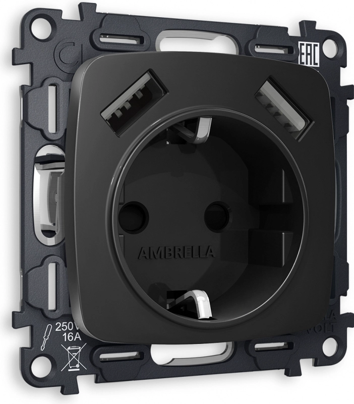 Розетка электрическая Ambrella OMEGA ЧЁРНАЯ МАТОВАЯ