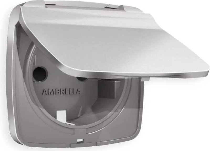 Лицевая панель OMEGA (Сталь матовый) для электрической розетки с заземлением со шторками и защитной крышкой IP44 QUANT OP5080