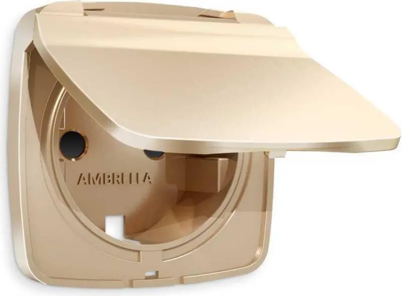 Лицевая панель OMEGA (Шампань) для электрической розетки с заземлением со шторками и защитной крышкой IP44 QUANT OP6080